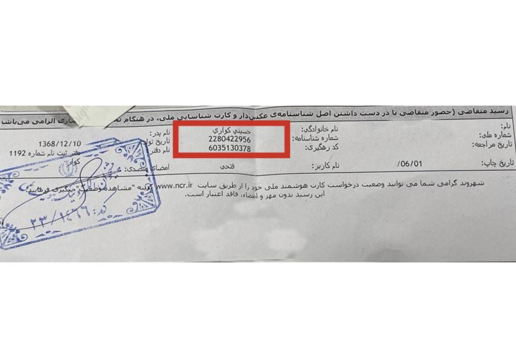 - اول، کارت ملی هوشمند و یا رسید درخواست کارت ملی که شماره رهگیری دارد.