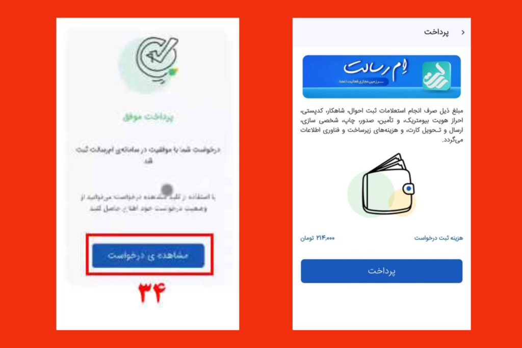 34- با پرداخت هزینهها در خواست شما با موفقیت ثبت می شود و می توانید با انتخاب گزینه مشاهده درخواست، از نتیجه وضعیت درخواست خود مطلع شوید.