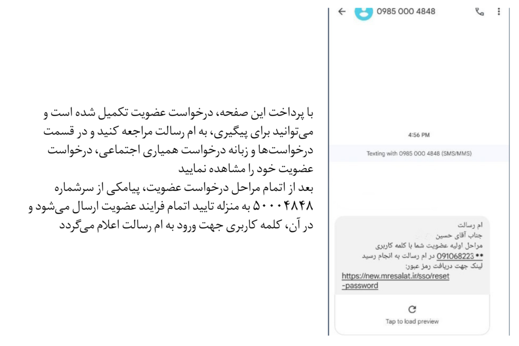 برای شروع درخواست عضویت، باید وارد ام رسالت شوید؛ اما پیش از آن، به چند نکته در خصوص ملزومات درخواست عضویت توجه کنید: