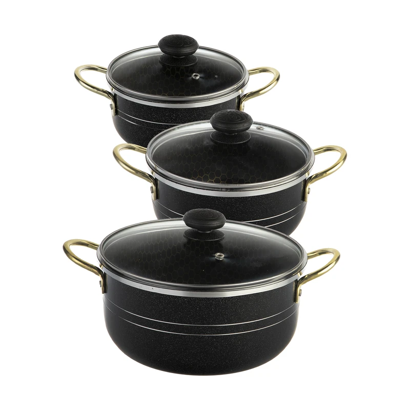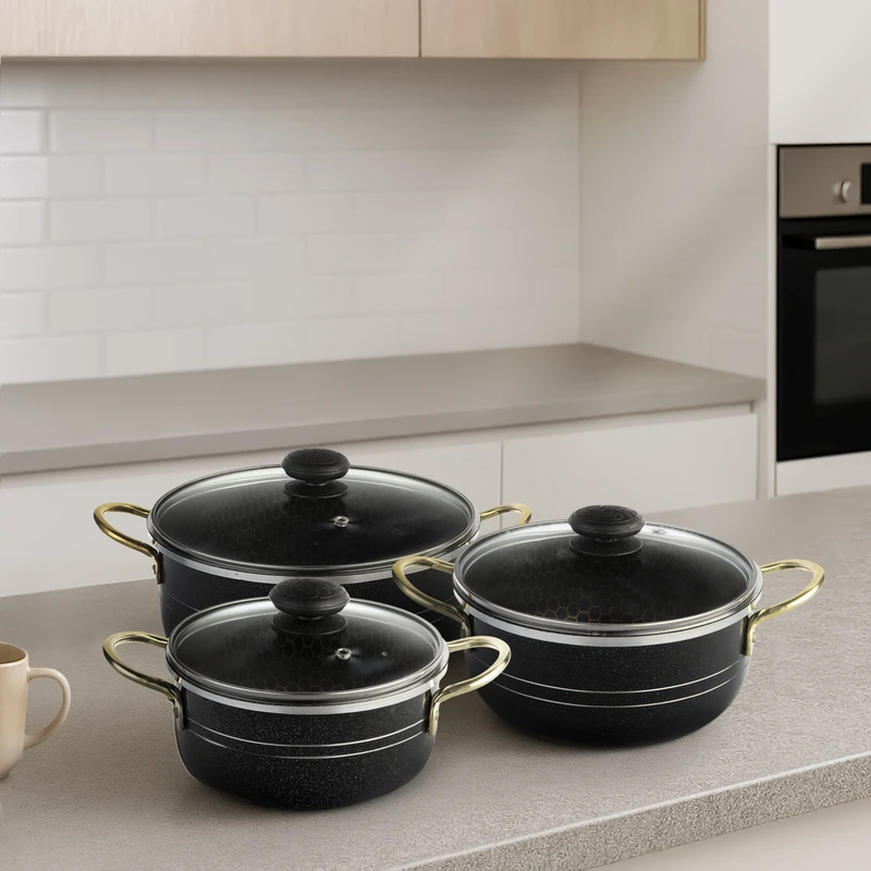 ست قابلمه نچسب 7 پارچه مشکی مات Non-Stick Cookware Set مدل 2201-SB طراحی ایتالیا طرح لانه زنبوری