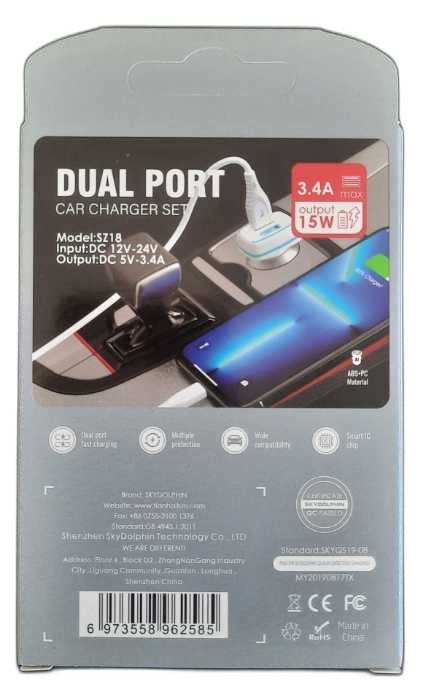 ورودی (Input): 12V ~24V خروجی (USB1): 5V ⎓ 3.4 A 9V ⎓ 2A 12V ⎓ 3.4A خروجی (USB2): 5V ⎓ 3A🔹ویژگی‌ها: دارای دو پورت USB برای شارژ هم‌زمان دو دستگاه سازگار با دستگاه‌های مختلف (موبایل، تبلت، گجت‌ها) طراحی کوچک و قابل‌حمل ساخته‌شده در چین (Made in China) نشان‌های استاندارد CE، RoHS و FCC