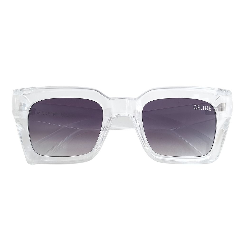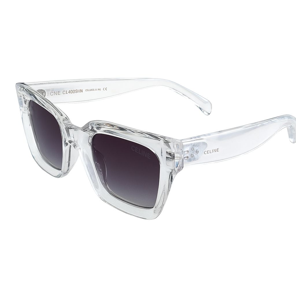 مدل: CELINE CL4003IN (یا مدل مشابه با فریم شفاف) جنس فریم: استات (Acetate) شفاف و مقاوم رنگ فریم: بی‌رنگ (Transparent Crystal) رنگ لنز: مشکی تیره (Black/Dark Gray) جنس لنز: پلی‌کربنات ضد خش محافظت در برابر اشعه UV: 100% UV Protection استایل: فشن / کلاسیک / چهارگوش (Square Oversized) کشور سازنده: ایتالیا (Made in Italy) طراحی لوکس و مدرن مخصوص برند سلین مناسب برای استایل‌های خیابانی، رسمی و تابستانی لنزهای با فیلتر UV400 برای محافظت از چشم فریم ضخیم و محکم با جلوه کریستالی شفاف