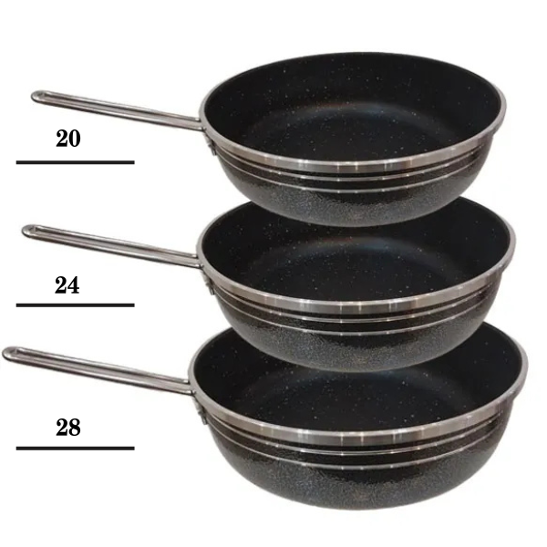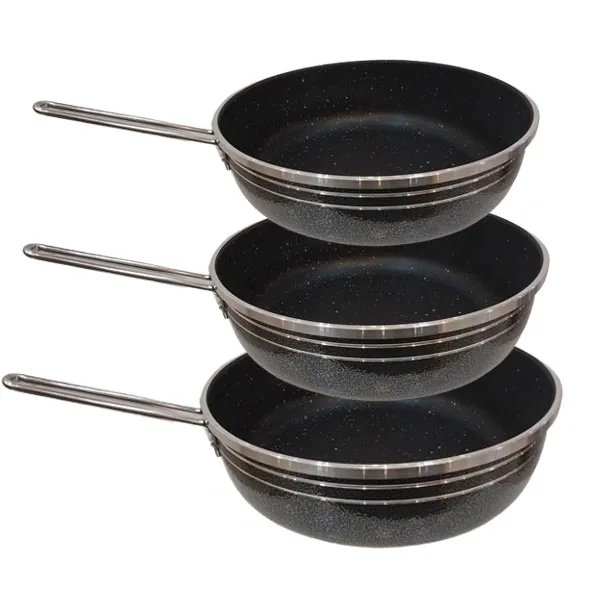 Granite frying pan with single steel handle, 3 pieces, model HM-220