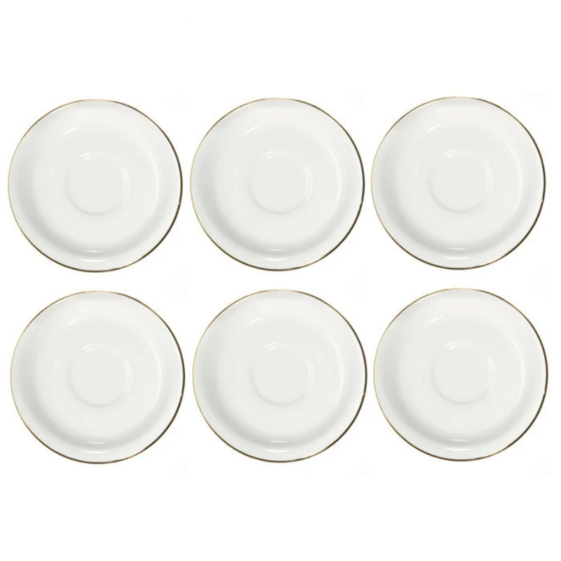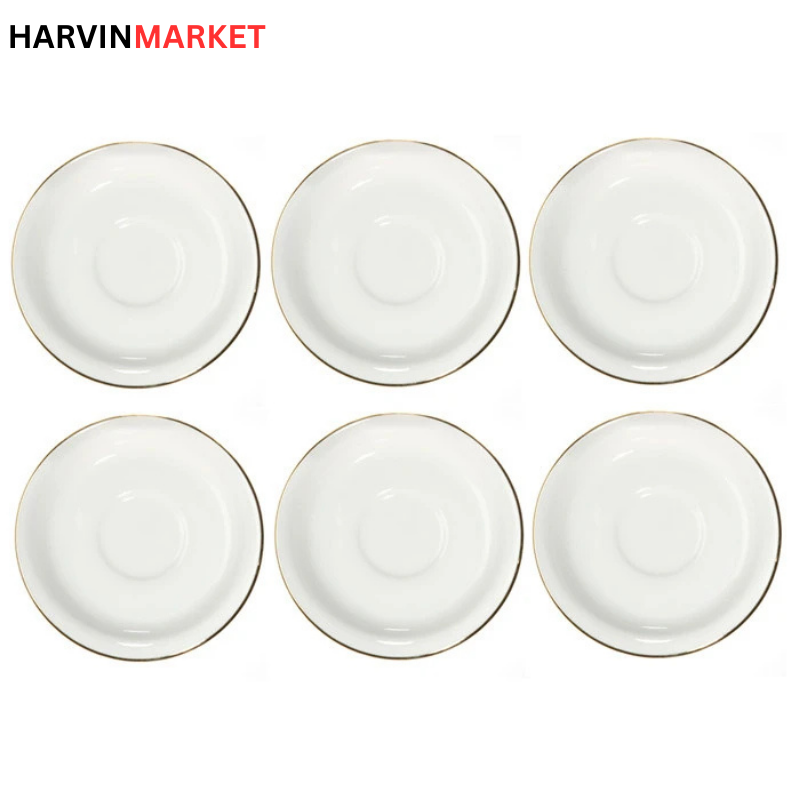 مجموعه ۶ عددی نعلبکی تقدیس با لب طلائی از چینی باکیفیت ساخته شده است. این نعلبکی‌ها شیک، مقاوم و مناسب سرو چای و قهوه در خانه، محل کار یا کافه هستند.