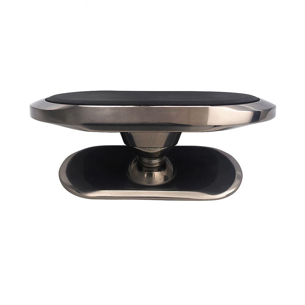 جنس بدنه فلزی و دارای روکش سیلیکونی به منظور جلوگیری از آسیب دیدن بدنه گوشی موبایل. - مناسب جهت چسبیدن به انواع سطوح صاف اعم از داشبورد، شیشه و دیگر مکان های دلخواه. - به همراه دو صفحه فلزی دایره ای و مستطیلی جهت قرارگیری در پشت قاب گوشی دارای پایه 360 درجه